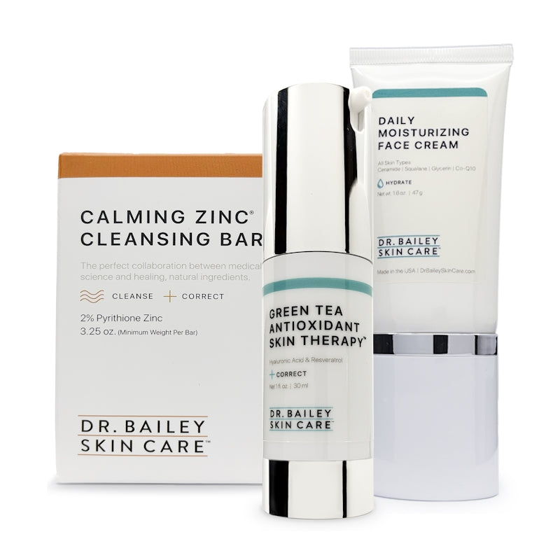 These three products are the first ones I used from Dr. Bailey's line... My skin looks the best that it has since I was a young woman, natural color, no redness. I am grateful to Dr. Bailey for helping me solve my skin care problems. MKR